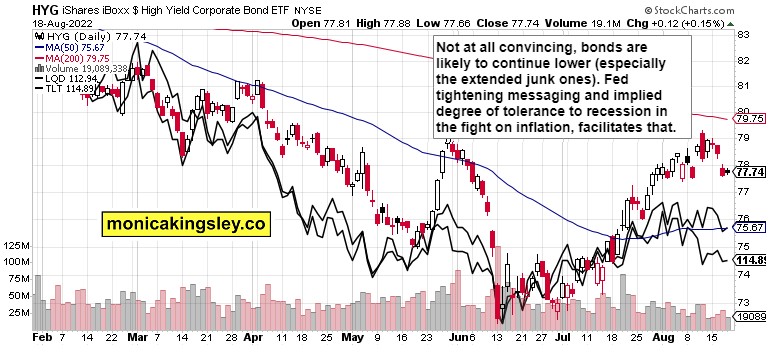 Next week won‘t be much better – I‘m looking for grim German PMIs Tuesday, challenged GDP readings on Thursday, and especially the hawkish Jackson Hole. It should be becoming increasingly clear that the risk-on rally is to meet serious reality check, and that lower stock (and other) market data are ahead. The sentiment of my Wednesday‘s recap of deteriorating economy, is to set the tone – and thankfully won‘t be as bad as the German persistently high PPI. Strong dollar to the rescue, a helpful tool in alleviating domestic inflation pressure in the States (yes, U.S. inflation peaked as I was advising you of in advance).
