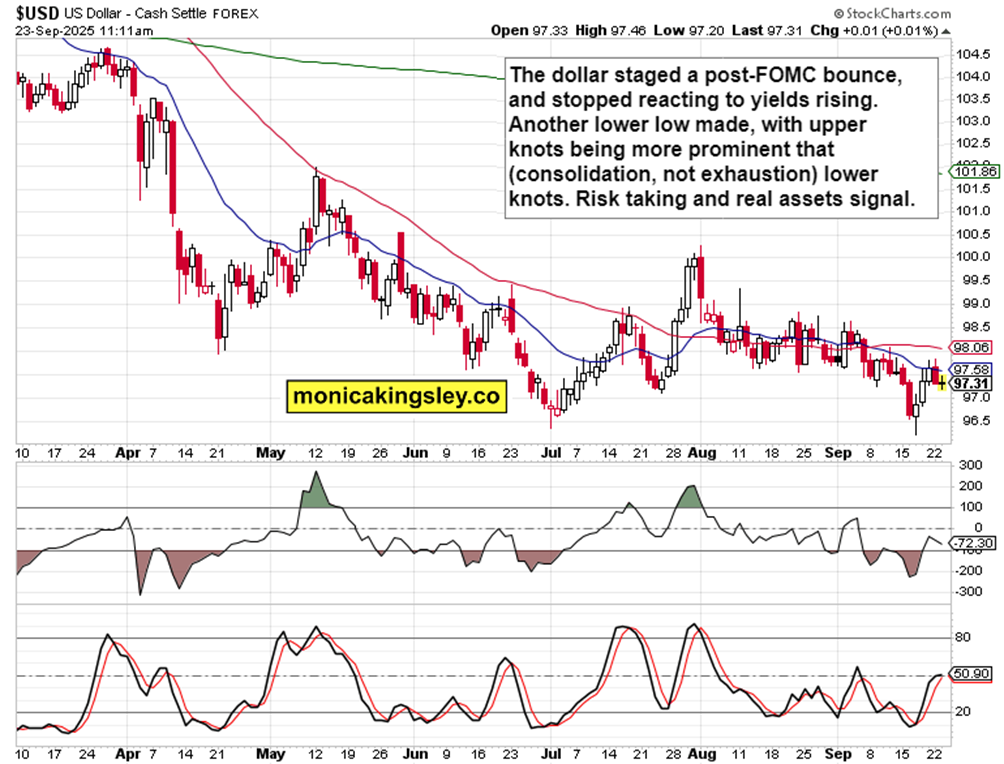 Are Stocks Overbought Here?“ I asked yesterday, and my answer to clients was clear – we got more upswing! How about today, what story do the sectors tell today? One of the most important messages being sent out there, is by USD hiccup restarting, and gold, silver with uranium surging still.