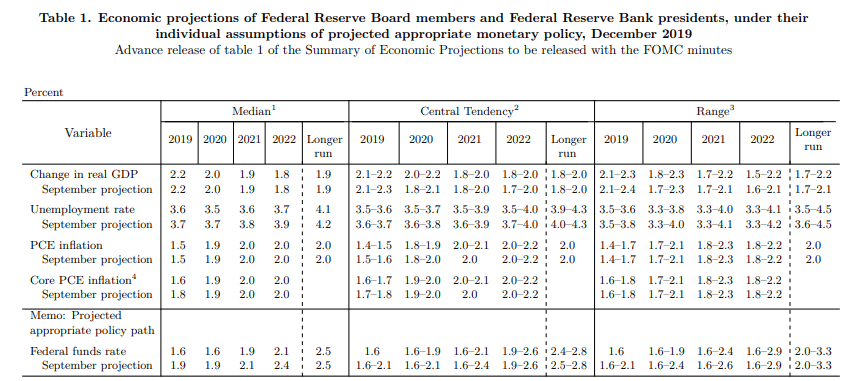 Fed interest rate policy has been in neutral since the October meeting and no change in anticipated through the end of the year. The Projection Materials released at the December 10-11 FOMC meeting predicted a stable fed funds rate until sometime in 2021. The next set will be issued at the March 17-18 meting.