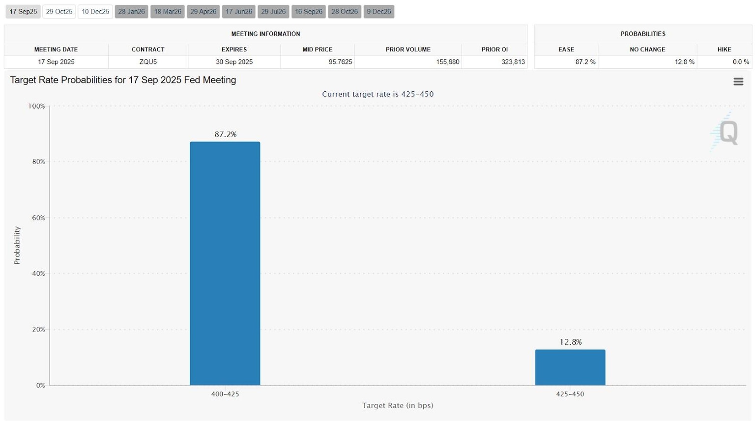 The CME FedWatch Tool captured this shift clearly: rate cut odds jumped from ~70% the week before to ~87% at the start of the new week. This surge in expectations reinforced a risk-on mood across asset classes.