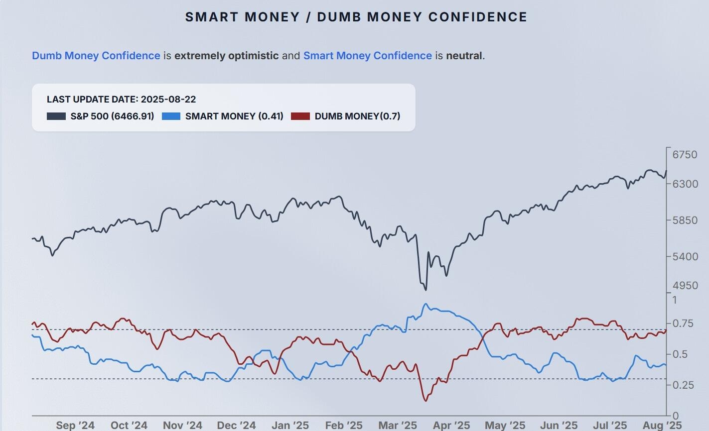 If you want more context on this, Sentimentrader is an interesting free tool to use. This reflects the accumulation and distribution behaviours of institutions (Smart Money) vs retail (Dumb Money).