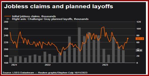 Having said all that, Reuters has a scary chart showing jobless claims perhaps turning a corner and the Challenger planned layoffs not too bad but a lot higher than in 2021.
