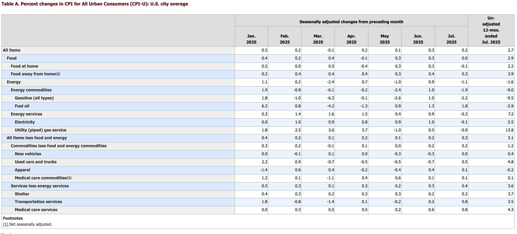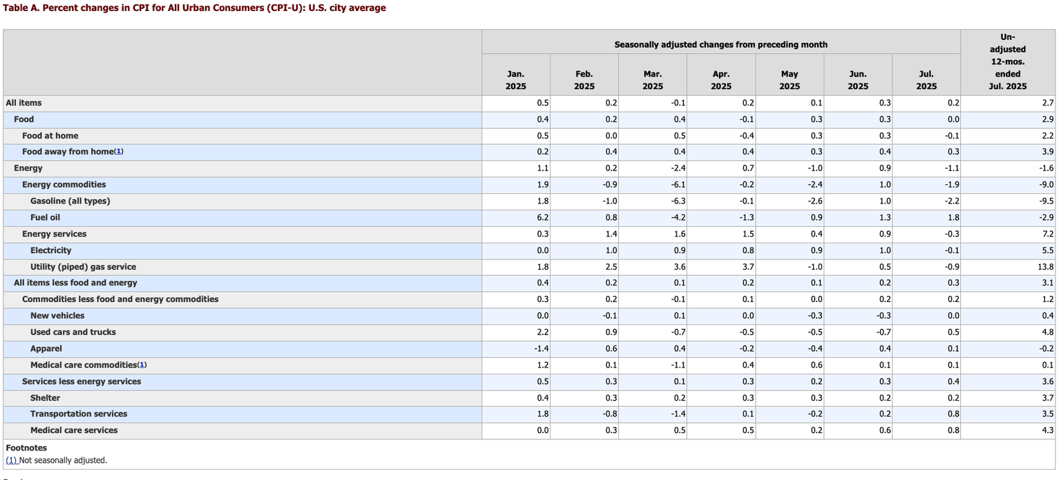 July CPI by the numbers