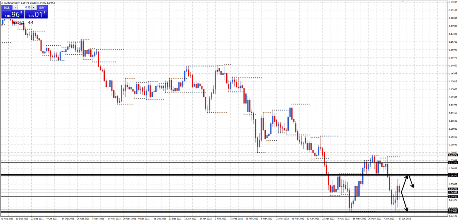 Daily support at 1.0359, resistance at 1.0627 and 1.0642.