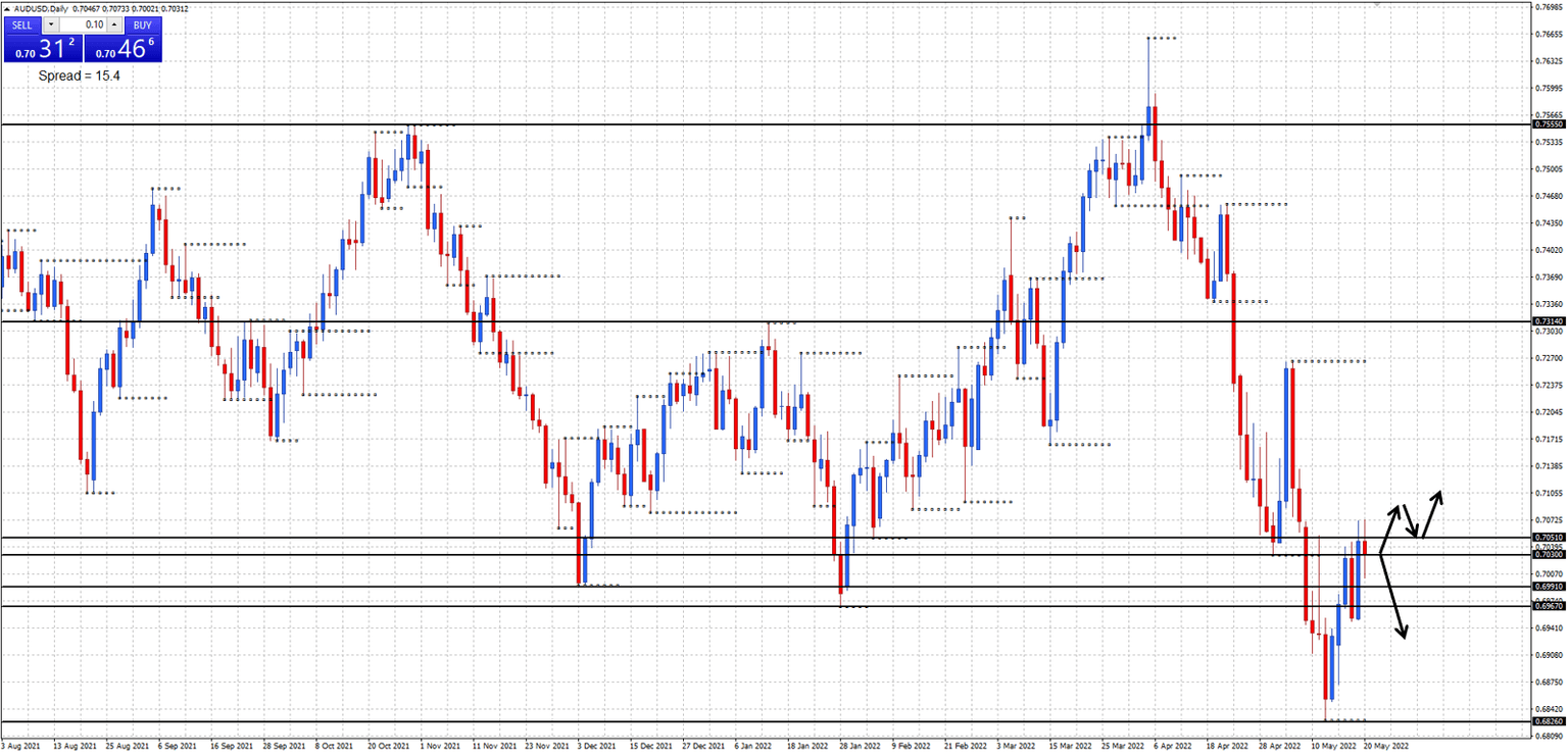 Price rallied and held at the 0.7030 and 0.7051 daily resistance levels last week. Will price hold at the 0.7030 and 0.7051 daily resistance levels for a move back below the 0.7000 level this week?