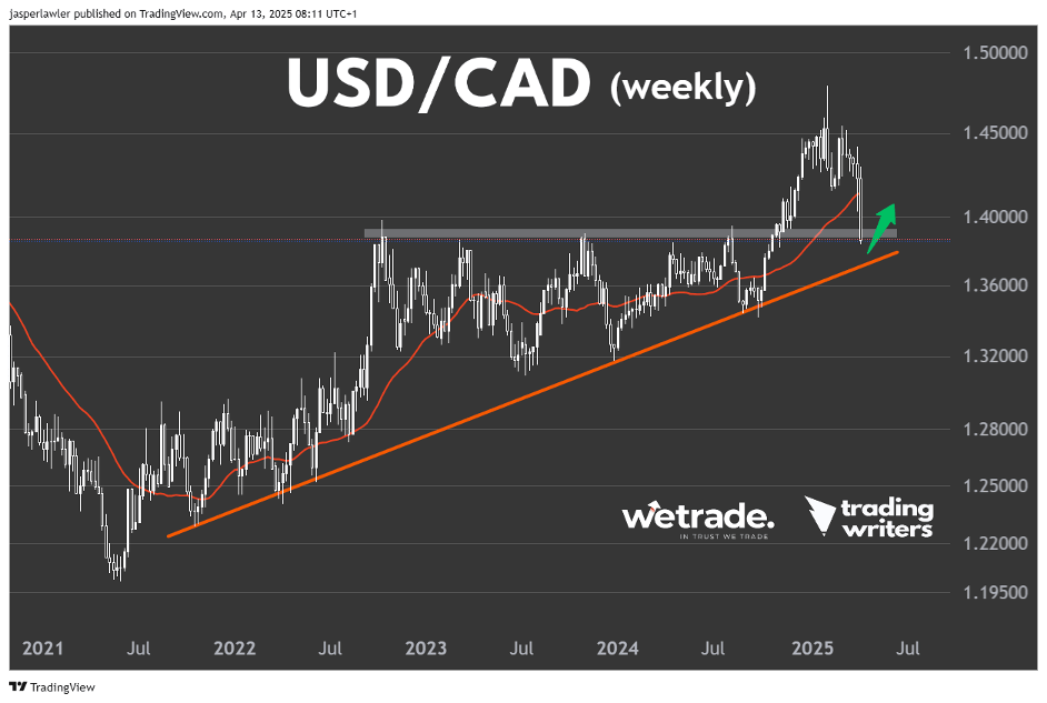 After a big breakout over the 1.3850 resistance in H2 last year, USD/CAD reversed from long term resistance at 1.47 and has slumped all the way back again to 1.3850, which is now possible support. Just below is the long term uptrend line.