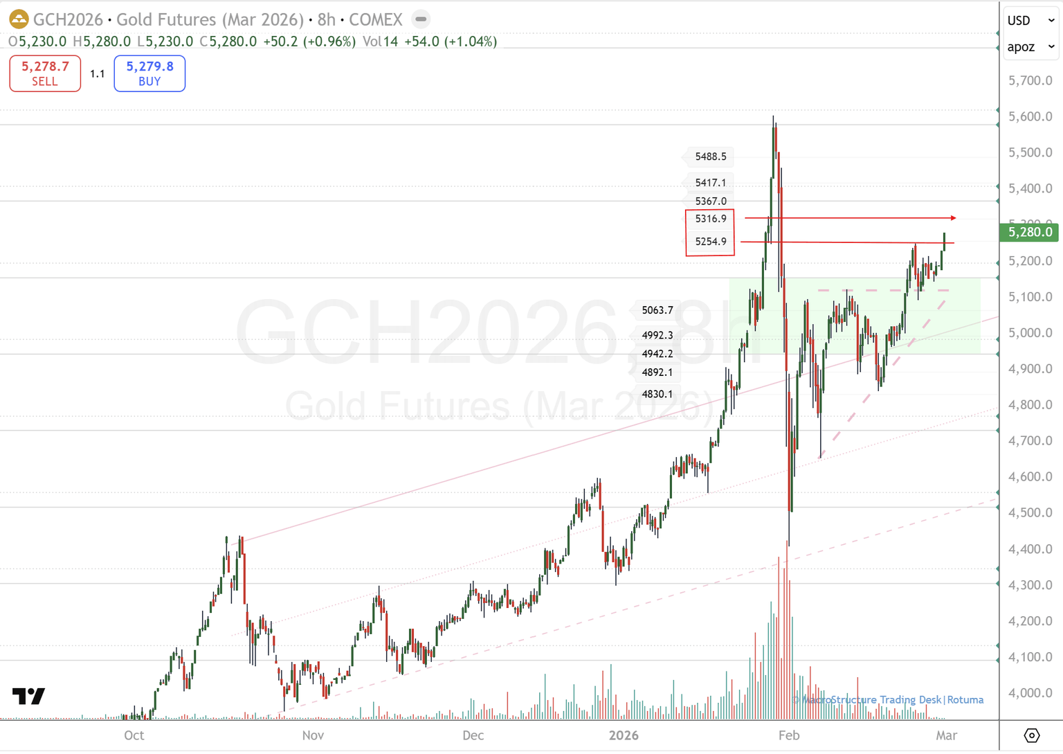 - Gold: tends to remain supported; acceptance above 5254–5316 becomes more likely