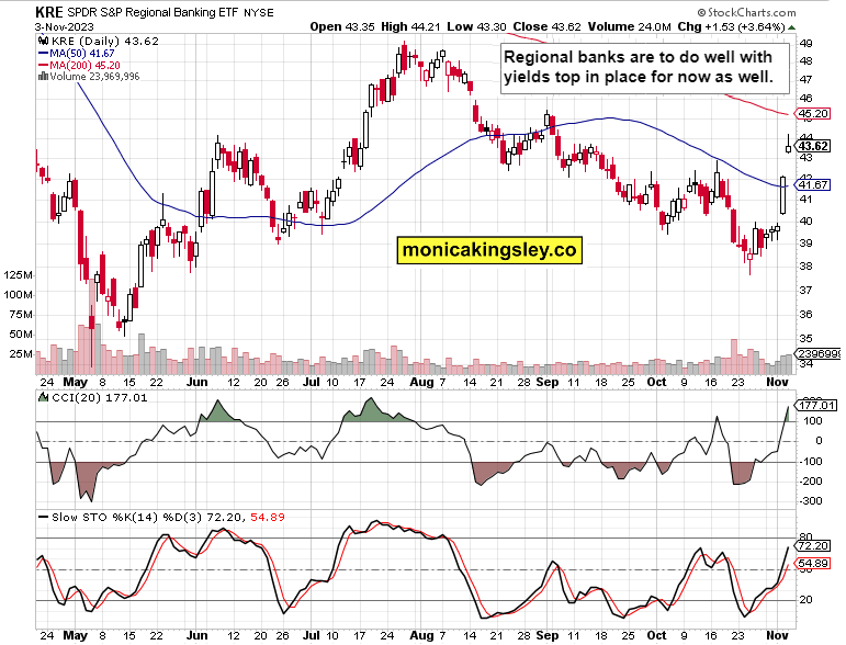 How about sectors – would it compare against tech or semiconductors? Yes, those interest rate sensitive ones would outperform in the current paradigm shift. XLE isn‘t staging a breakdown here, and together with XLK and select financials, would form a good portfolio part for the Q4 rally unfolding.