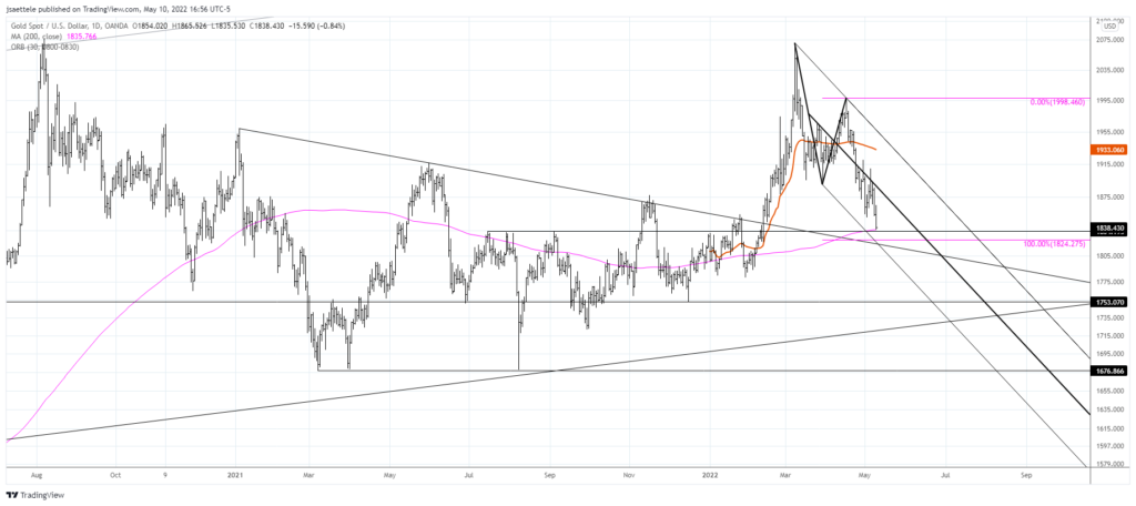 5/9 – Pay attention to gold as it’s closing in on the key 1824/35 zone, which could produce a big low.