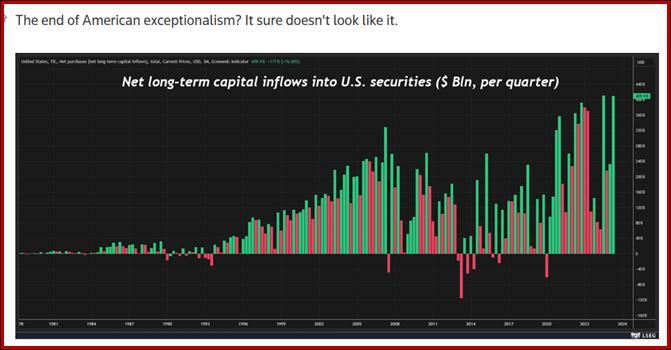 Reuters points out “Once U.S. investors' purchases of foreign assets are discounted, the net flow of long-term capital into U.S. securities in June was still a healthy $151 billion, taking the total for the second quarter to a record-matching $410 billion.