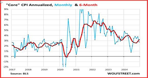 But as Wolf Street notes, beneath the skin, relief is not what you get. The headline CPI is up 2.9% is the worst since July. Annualize the month-over-month, and you get 4.8%, the worst since February nearly a year ago. And core is “stuck” for the 7th month at 3.1-3.3%.