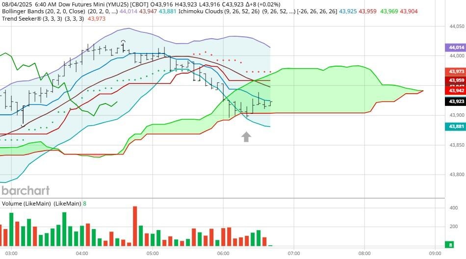 Yesterday the ZT dived Lower at around 7:30 AM EST with no real economic news pending. The Dow climbed Higher at the same time. Look at the charts below and you'll see a pattern for both assets. The Dow climbed Higher at 7:30 AM EST and the ZT dived Lower at around the same time. These charts represent the newest version of Bar Charts, and I've changed the timeframe to a 15-minute chart to display better. This represented a Short opportunity on the 2-year note, as a trader you could have netted a dozen plus ticks per contract on this trade. Each tick is worth $6.25. Please note: the front month for ZT is now Sep '25 and the Dow is now Sep '25. I've changed the format to filled Candlesticks (not hollow) such that it may be more apparent and visible.
