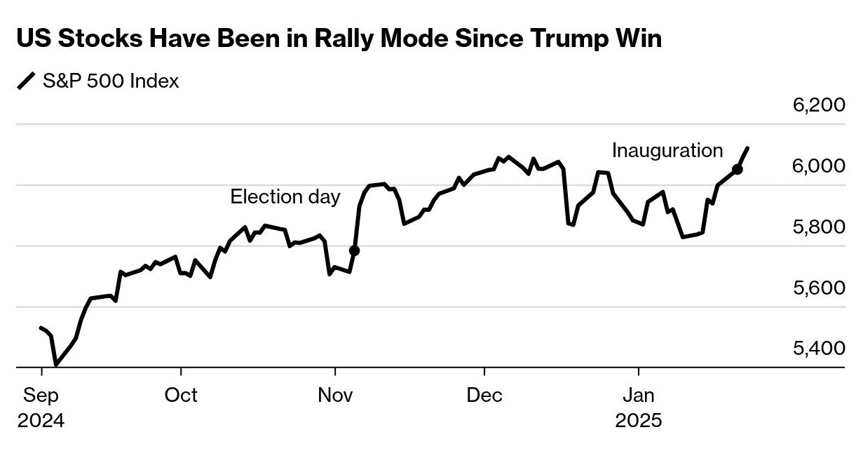 The S&P 500 has risen 2% this week (at the time of writing), putting it on course for the best start for a new president since Ronald Reagan took office in 1985.