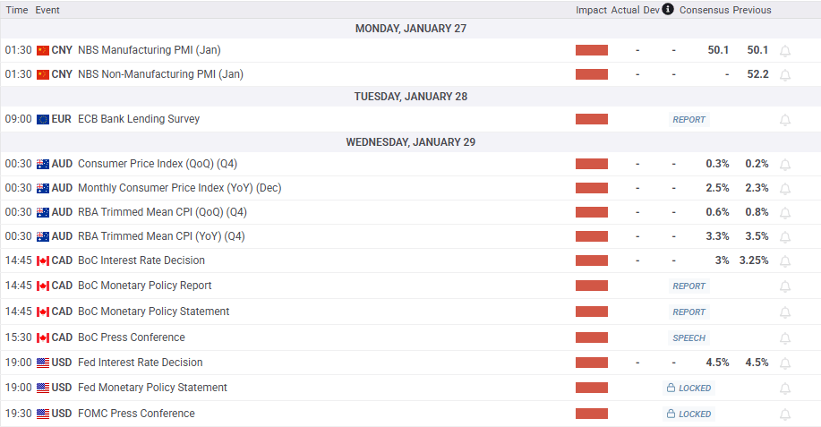 China's Lunar New Year holiday starts next week, so most key data will be released on Monday. Before that, January's PMI data will be out, and I do think a slight increase in the manufacturing PMI to 50.3 from 50.1 in December. Also on Monday, China's December industrial profits are expected to show a year-on-year decline for 2024, and the MLF rate is likely to stay at 2.0%.