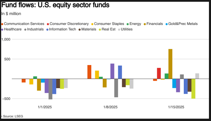 The S&P 500 banking index (.SPXBK) and regional banks (.KRX) outpaced the main indexes this week, gaining approximately 6.1% and 7.6%, respectively.