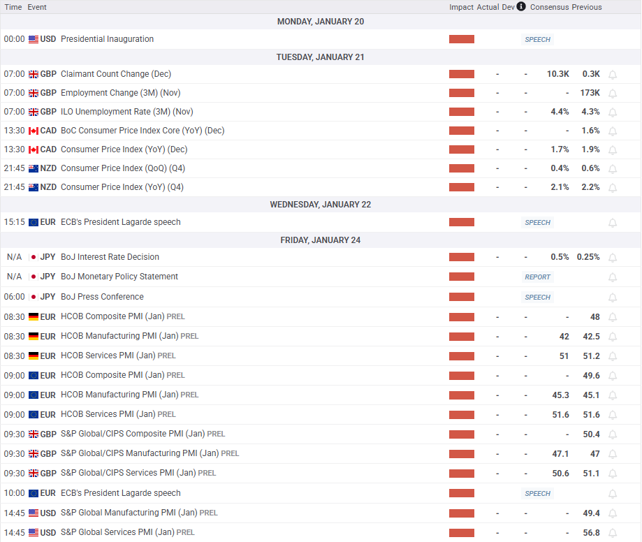 Markets bid farewell to the last trading week before Trump 2.0 as incoming US President Donald Trump will be inaugurated on Monday. Markets have been bracing for volatility and potential surprises in policy as Trump returns to the White House.