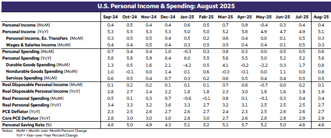 The household sector continues to demonstrate resilience through uncertainty. Overall consumer spending rose 0.4% in August on an inflation-adjusted basis. While strength in spending wasn't concentrated in any one consumer segment, growth in discretionary purchases stands out to us (chart). Recreational goods (which includes anything from board games to recreational vehicles) jumped 3.3% in August, made more impressive following a 2% gain the month prior. Clothing sales were also another bright spot, up 1.1% last month, marking the fourth straight monthly gain and ninth in eleven months in real inflation-adjusted terms. On the services side, the largest gains came from recreational services and transportation services.