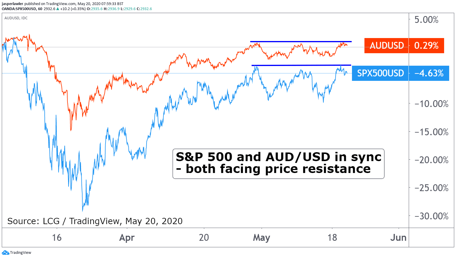 Chart: SP 500 & AUD/USD (3-months)