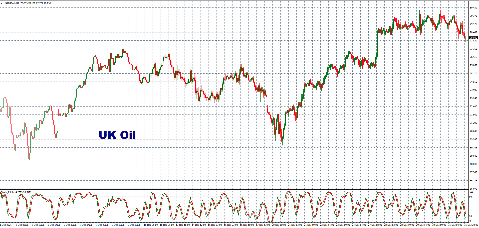As we can see from the chart, Brent Crude hit the low of the month on the second day at around $66.36 per barrel and finished the year at $78, not far from the high around $80. WTI, of course, traded in a similar range from $62.90 to the final price of $75.64.
