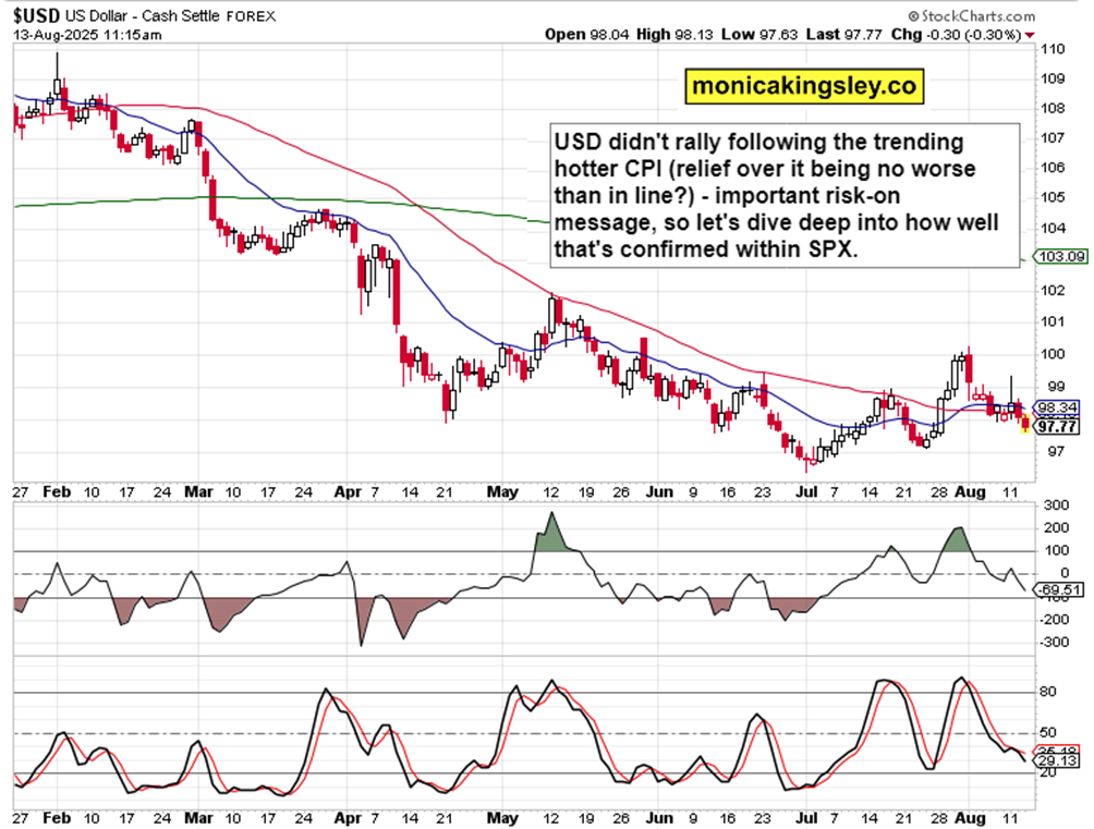 S&P 500 made a great move on CPI with regard to the 6,425 area – a move that all clients benefited mightily on (in stocks and EURUSD – let alone being ready for precious metals moves). I wasn‘t spooked by the Nasdaq undershoot following the data release bump, I was more impressed with Russell 2000 not showing any weakness – and just like that, one by one the main indices started going for the CPI aftermath highs, and overcoming these levels as I discuss at sufficient length in today‘s video. Would you wonder when FOMO develops? Pay attention to Bessent‘s words too.