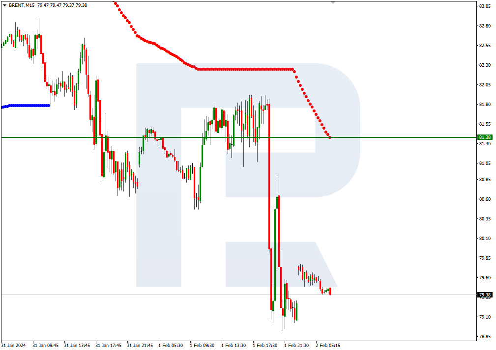 On M15, following a rebound from the 2/8 (78.12) level on H4, the price rise could be additionally supported by a breakout of the upper line of the VoltyChannel.