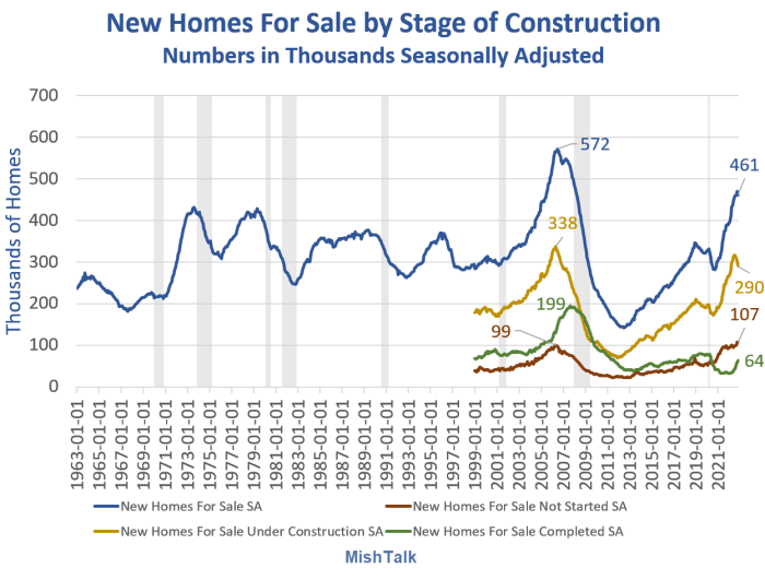 New home sales report by stage of construction from Census Department, chart by Mish