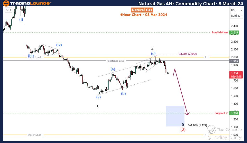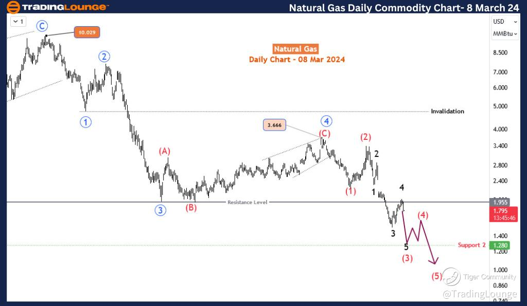 Natural Gas (NG) embarked on a minor rally between late February and early March, marking a recovery of over 31%. However, this ascent encountered a formidable barrier, casting a shadow over the recovery journey from the low of $1.51. Despite this recovery surge, the bears appear resolute in their stance, and the Elliott wave theory provides additional confirmation that NG prices are poised for further faltering in the forthcoming weeks.
