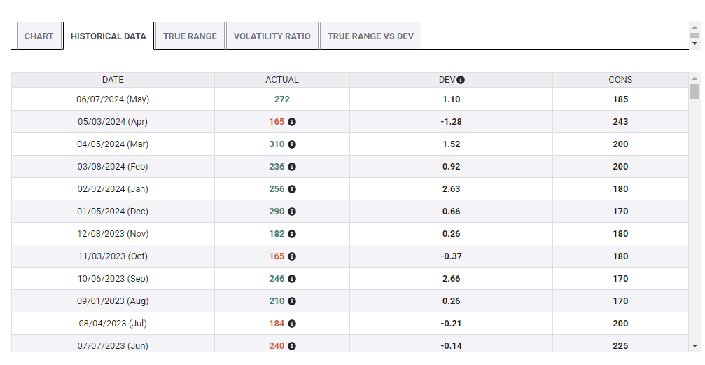 Economists expect an increase of 156,000 in June from 152,000 reported in May. To have a sustained impact, a sub-100K rise or a figure above 220K would need to be seen.