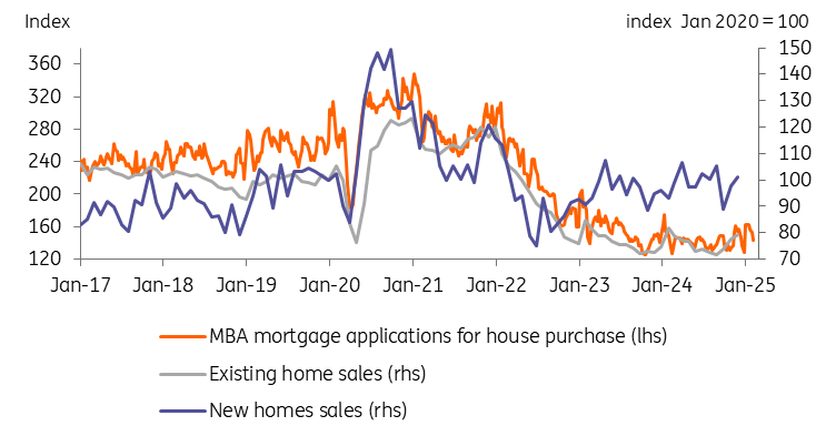 From a demand perspective, we are in an unusual situation in that the Federal Reserve has cut the policy interest rate by 100bp since September 2024, yet the 30-year mortgage rate has risen by 90bp over the same period. This reflects the move higher in longer-dated US Treasury yields with President Trump’s policy mix of low taxes and light-touch regulation perceived to be supportive for economic growth while immigration controls and the use of trade tariffs are seen as potentially inflationary. Consequently, financial markets have been scaling back their views on how deeply the Federal Reserve can cut interest rates, which has put upward pressure on longer-dated borrowing costs.