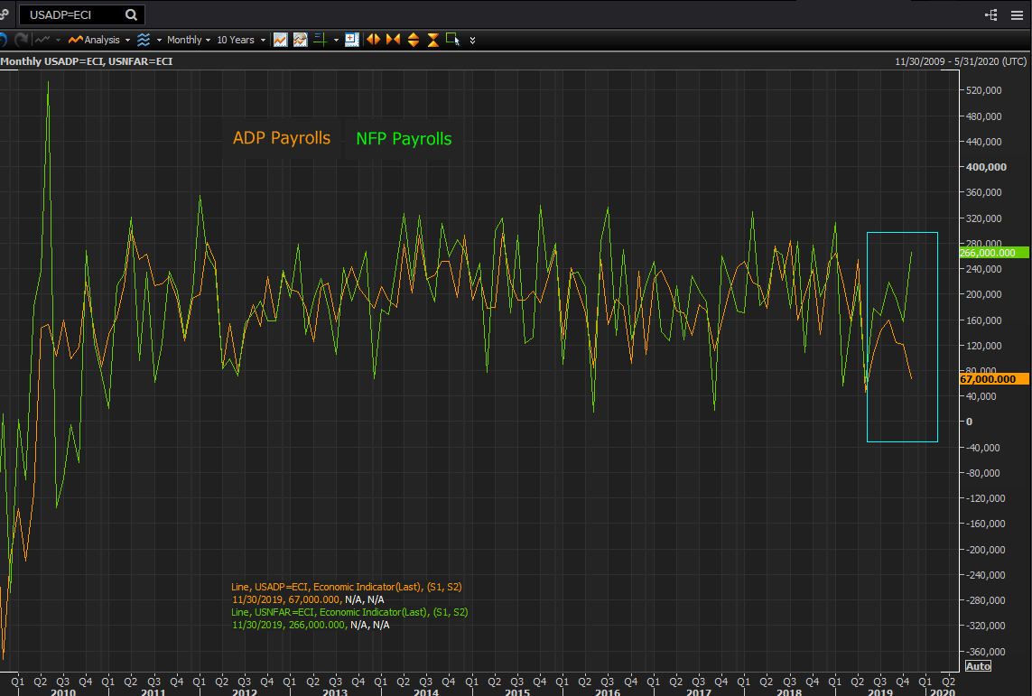 The November performance also ended the concern that the ADP private payroll total of 67,000 was an indicator for the nationwide NFP number.