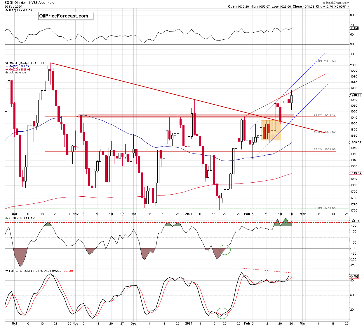 Despite this drop, the bulls closed ranks and bounced off this area, creating another big white candle on the chart on Feb.21. Thanks to this price action, the XOI verified the earlier breakout above the mentioned resistance area, which translated into further improvement and fresh 2024 peans in the following days.