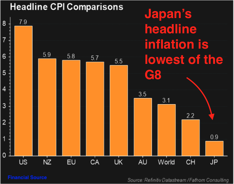 Inflation is still relatively low in Japan with the headline at 0.9%. The lowest of the G8.