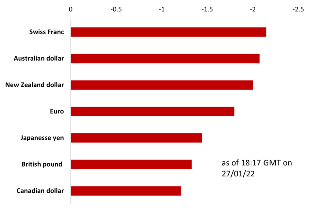 By Thursday’s European session both the US-2yr benchmark yield and the DXY had soared to multi-year highs, finding additional support by a better-than-expected advanced US Q4-2021 report. The US 10-year yield, however, fell as investors reacted to signs that geopolitical tensions related to the Ukraine were easing and reassessed lower the outlook for US growth and inflation. European and US equities markets, however, were buoyed by reduced geopolitical risks and what could have been a more hawkish Fed.