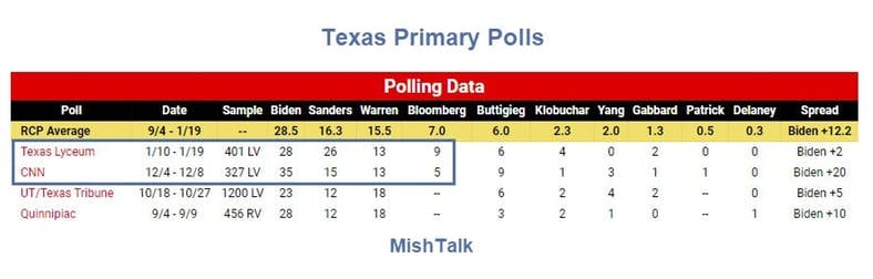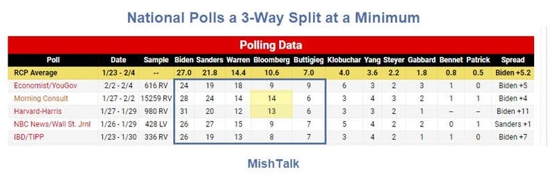 Yet, one observation is worth noting. Bloomberg went from 0% to 9%. This will may votes from Biden, but not necessarily do anything for Sanders.