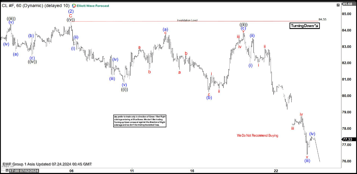 Oil (CL) turning lower in Elliott Wave impulsive structure [Video]