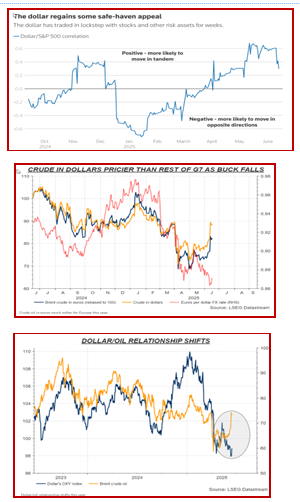 Oil/dollar is not the only match-up that is changing. As we have seen, the correlation of the dollar to the stock market has become stronger. In decades past, it was a negative correction. Now the dollar moves in lockstep with the S&P, which is not more explainable than the inverse relationship. Just as the dollar/oil link is coming apart at the seams, so is the traditional relationship with both stocks and bonds. Long-run, this is “destabilization” and bodes ill for the dollar.