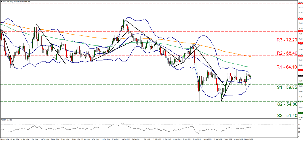We tend to have some worries for the easing of economic activity in China’s and US manufacturing sectors and their possible adverse effect on oil demand. It’s characteristic that China’s manufacturing PMI figures for May were below the reading of 50, implying a contraction of economic activity in the sector for the past month. Across the Pacific, the US manufacturing sector also suffered a decrease of economic activity as the US ISM manufacturing PMI figure despite being allready below the reading of 50, unexpectedly dropped even lower. Also the US factory orders growth rate dropped below the zero, implying a reduction and darkening the outlook of the US manufacturing sector. The contraction of economic activity in the US and China could adversely affect oil demand which in turn could weigh on oil prices. Tomorrow we note the release of the US employment report for May yet we tend to place more attention on a deeper fundamental issue, namely the trade tensions from Trump’s tariffs, and despite the relative saturation of the subject, any escalation of trading tensions could weigh on oil prices and vice versa.
