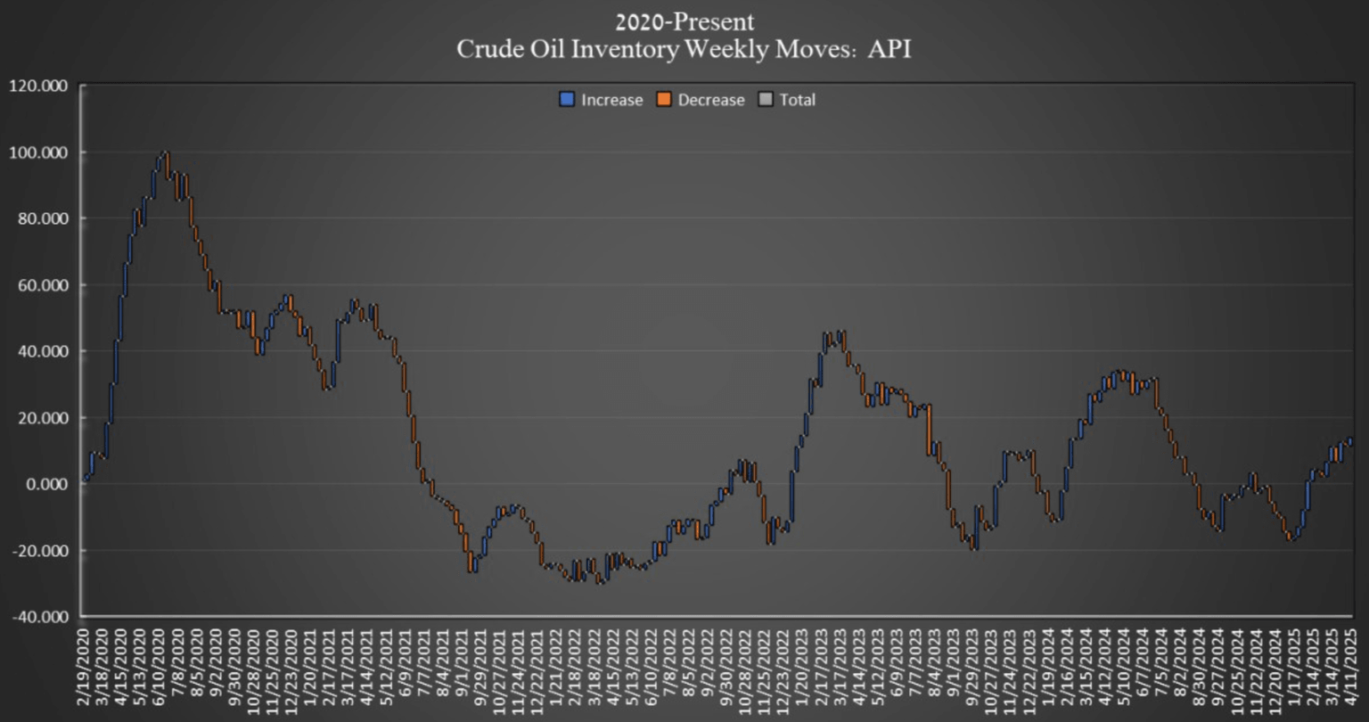 New inventory data further soured sentiment in oil markets. The American Petroleum Institute (API) estimated U.S. crude oil inventories rose by 2.4 million barrels for the week ending April 11, surprising analysts who had expected a drawdown of 1.68 million barrels. This follows a 1.057 million-barrel drop the prior week, putting the year-to-date inventory build at over 24 million barrels.