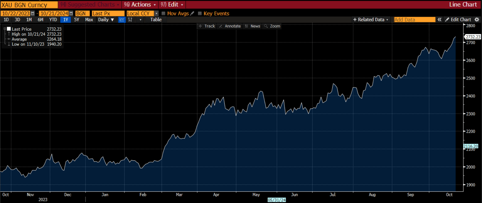 At the same time, gold is considered the ultimate inflation hedge, and part of the reason for gold’s push higher is that investors see more inflation risks on the horizon. For example, US growth is expanding just as the Federal Reserve has cut interest rates by 50 basis points and is expected to cut rates another five times by the middle of next year. Also, the Chinese government has expanded its stimulus plan to try and boost its economy.