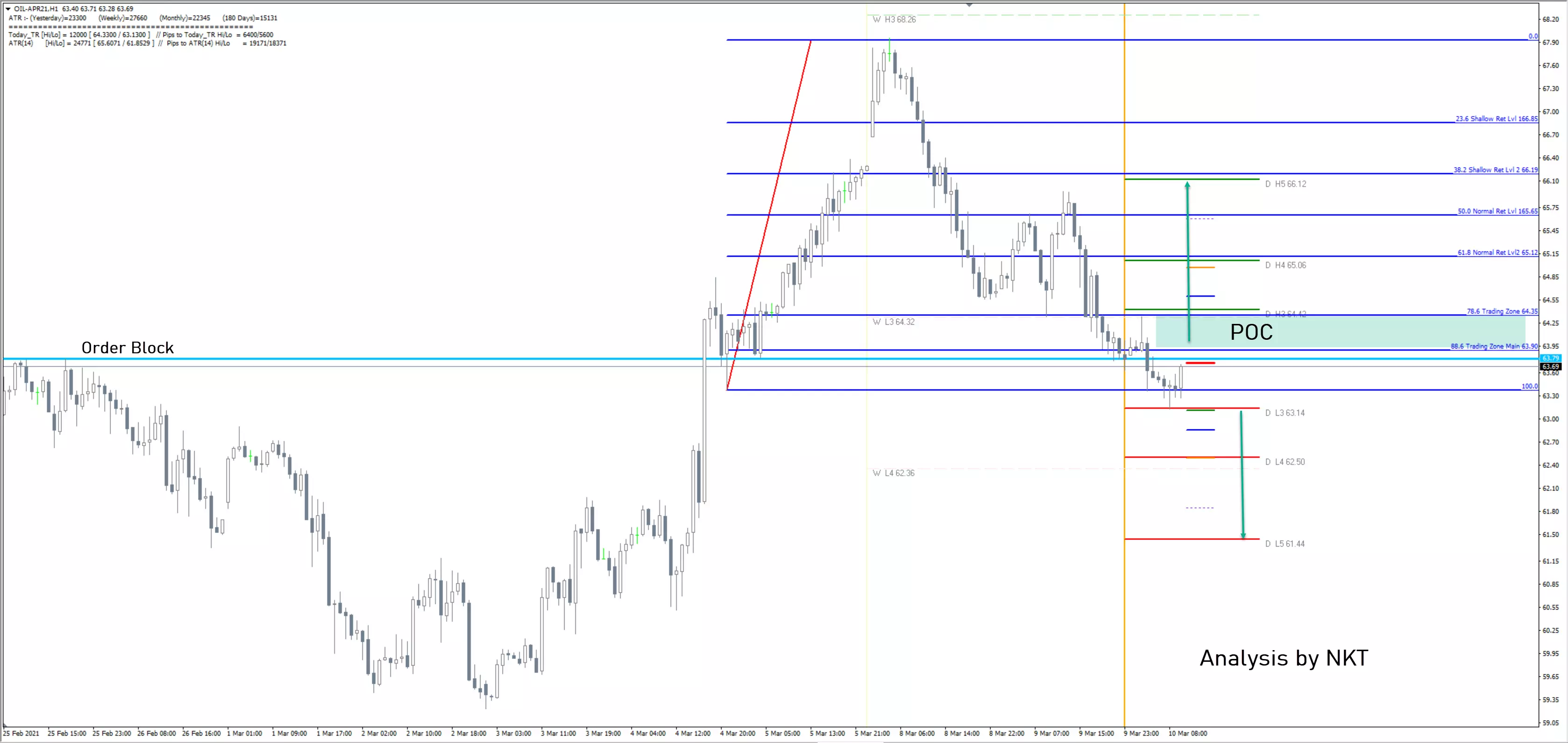 As the price always tends to reach the equilibrium after having a substantial move up or down, we are seeing a retracement. The zone 63.90-64.35 is very important. If the market closes in the POC zone we might expect a bounce above. Targets will be 64.42 followed by 65.06 and 66.12. However a drop below 63.14 will instigate a further bearish pressure towards 62.50 and 61.44.