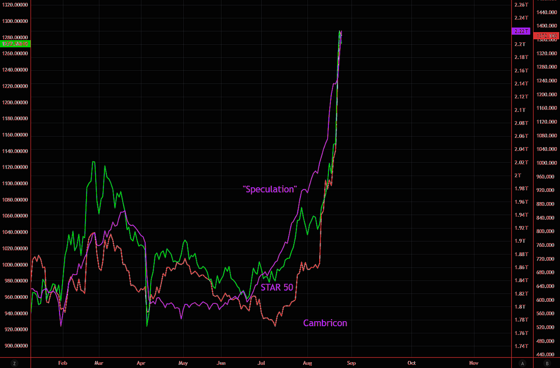 China’s AI fever — Cambricon is still vertical, STAR 50 is still overheated, mania mode is engaged.