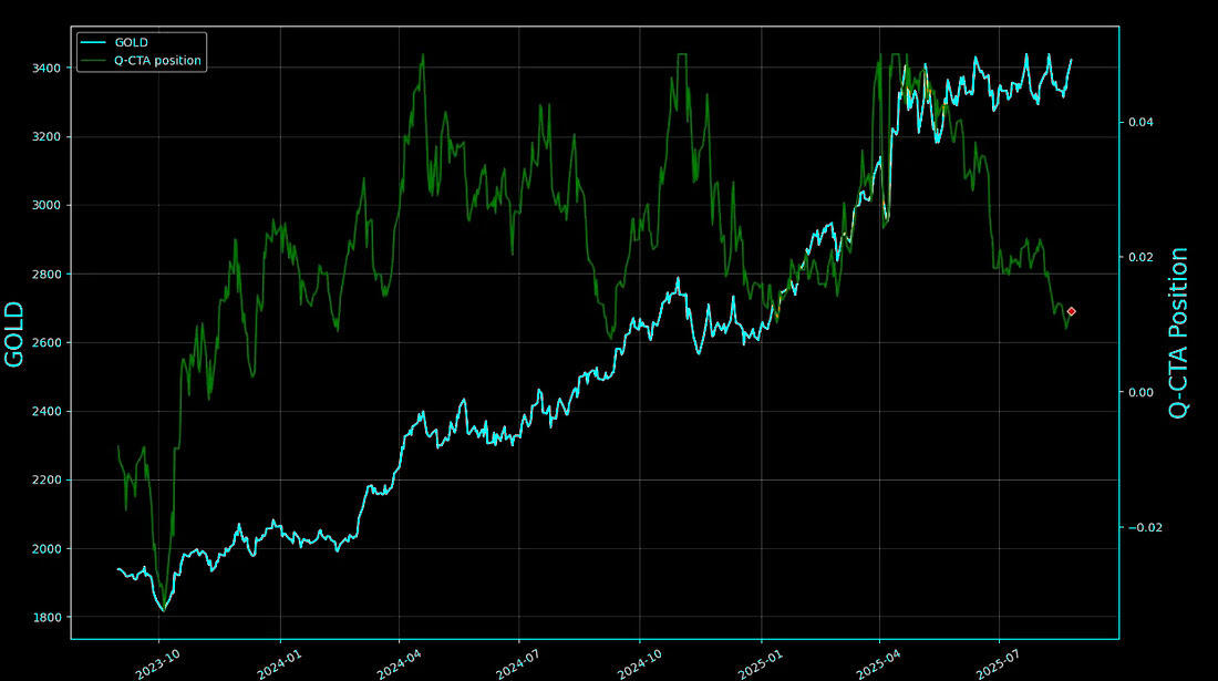 Gold, ever the eccentric traveller, has been marching to its own beat. Speculators tried to front-run the recent fall and were left stranded as the metal climbed higher. Now, CTAs, forced by their models, are preparing to add an estimated $10 billion in notional GC futures.