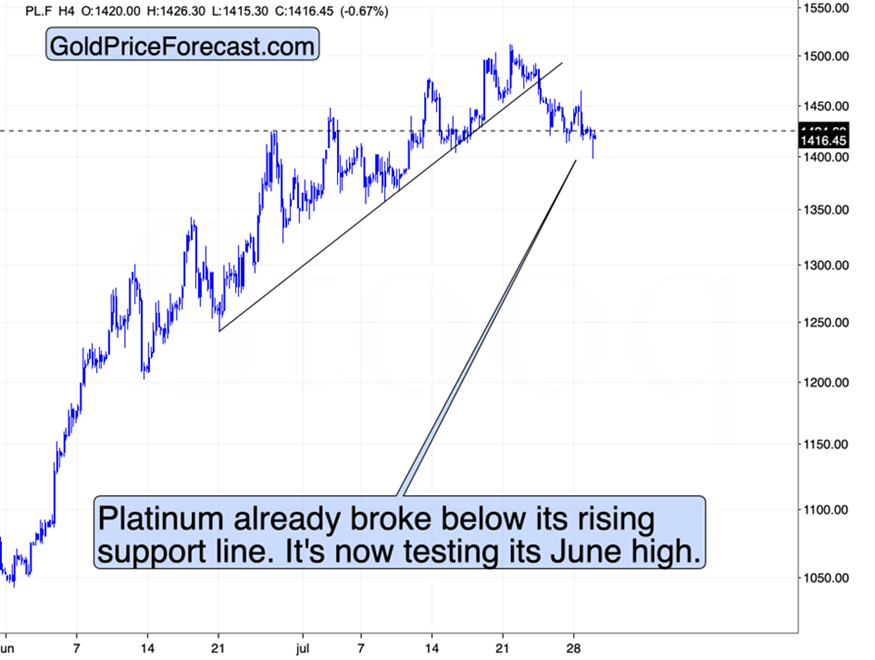 Platinum already moved back below its June high, but it’s taking a break before declining more. Again – it’s on a verge of the big move lower.
