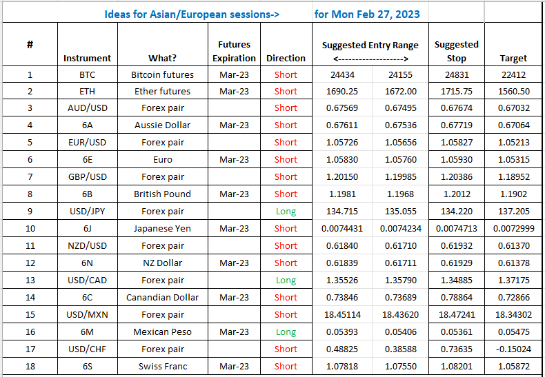 For today, we present our very short-term daily playbook directed to the intraday trader of forex and currencies with a chosen set of spot pairs and their associated futures which trade on the CME.