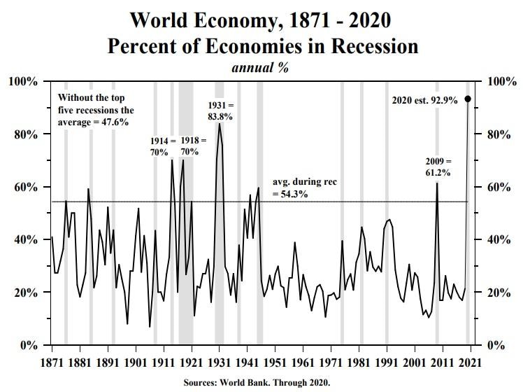 The bottom line is that a bumpy road is the base case during the next few weeks. The major U.S. equity indices are likely to persist at elevated levels as long as the 10,300 and 3,030 levels hold in the Nasdaq 100 and S&P 500, respectively. However, the overheated technical and exuberant sentiment picture probably lead to a cycle high sooner rather than later. There is something different today than in 1999. A record-breaking percentage of economies are in recession worldwide. Recessionary pressure has been the natural predator of bull runs historically. Therefore, long-term investors are best off on the sidelines.