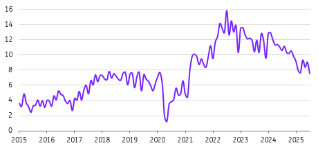In recent months, policymakers have been pointing to elevated wage growth as one of the key arguments for a cautious approach to rate cuts and maintaining relatively restrictive monetary policy. July’s lower reading suggests a positive outlook for a continued moderation in wage growth, weakening the strength of this argument. Business surveys have also revealed that wage pressure is easing, and the proposed increase in the minimum wage and compensation in the public sector in 2026 (3.0% in both cases) should further cool wage growth moving forward.