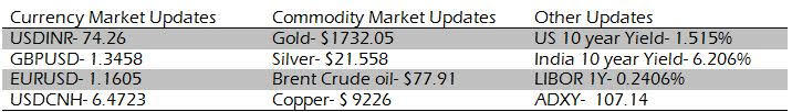 FTSE Russell, which had placed Indian Government bonds on watchlist for inclusion in its bond index will announce the outcome of its review. Any progress on index inclusion would be a positive for domestic bonds and the Rupee.