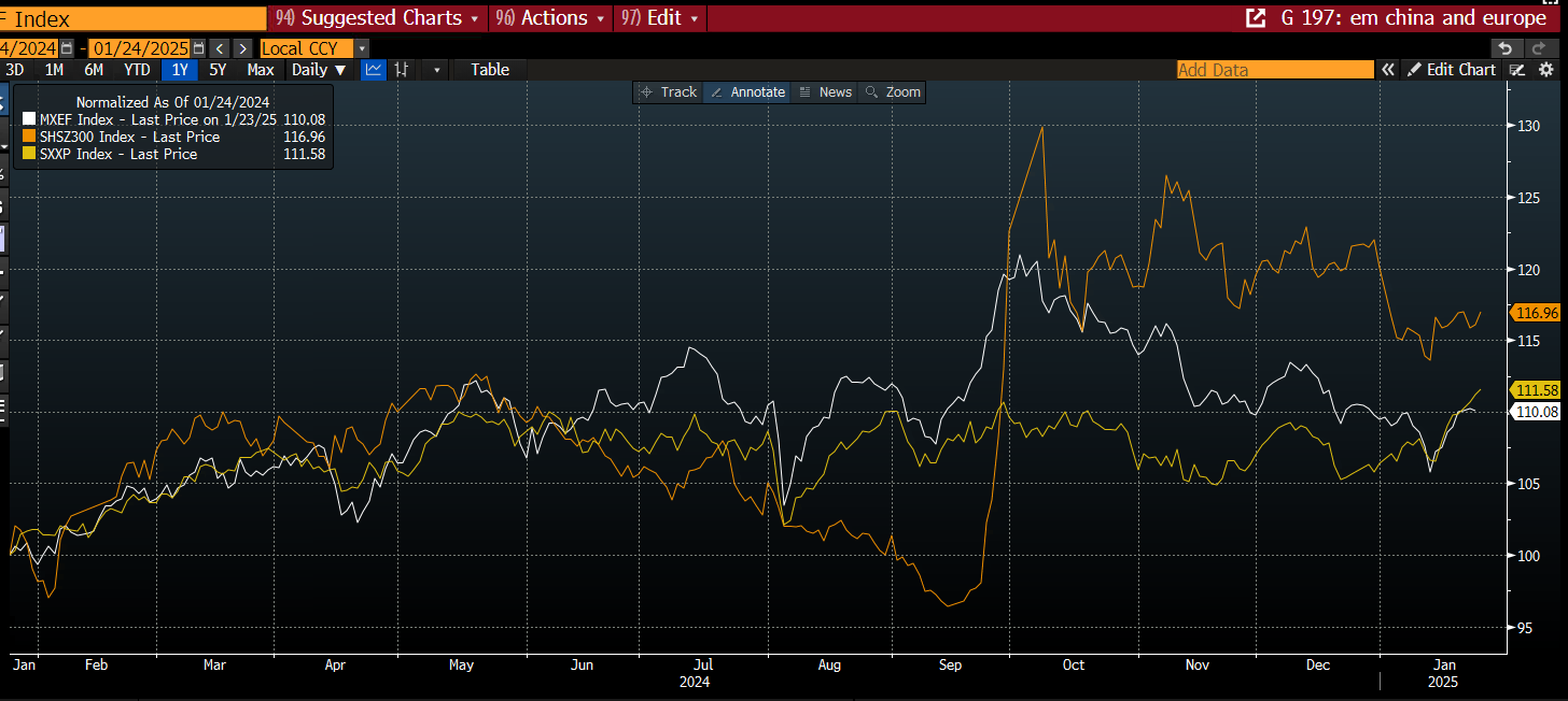 In these early days of the Trump administration, it appears that tariffs on China and the EU may not be his top priority. Of course, things could change, but for now this is sparking a rally in EM FX, it has allowed the BOJ to hike interest rates without causing a major bout of volatility in the yen and it could allow global ex US stocks a chance to play catch up to the US, as the tariff trade is unwound. As you can see, the main Chinese CSI 300 index, the MSCI EM index and the Eurostoxx index have all struggled since the start of the Trump trade back in October. However, now that President Trump is in office, these stock indices are in recovery mode. We will be watching to see if this continues.