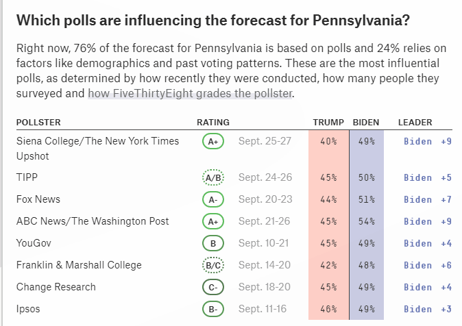 Trump also touts Biden – a life-long centrist chosen for his ability to appeal to moderate Republicans – as a radical leftist. That campaign did not move the dial either. National opinion polls and those in critical battleground states have shown a consistent lead for Biden. The most recent surveys from Pennsylvania show that Trump's potential loss is beyond the margin of error: