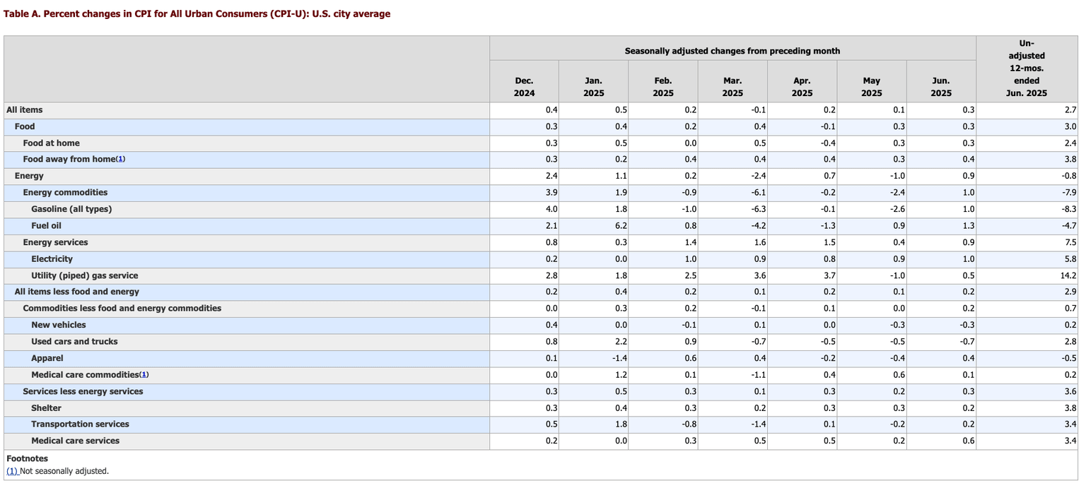 The financial media called it a “mixed” report. CNBC led its report writing, “Consumer prices rose in June as President Donald Trump’s tariffs began to slowly work their way through the U.S. economy." Most mainstream headlines emphasized tariffs and their impact on prices.